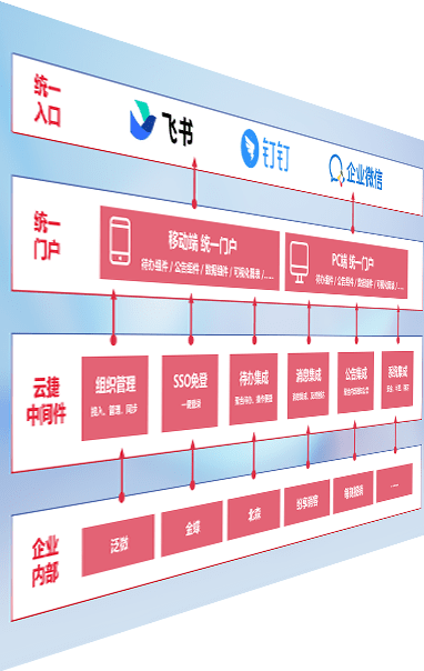 对协作平台提供支持服务,,,,支持企业应用与协作平台对接,,包含组织同步、、、、消息集成、、待办集成等。。支持目前主流的协作平台:钉钉、、企微和飞书。。